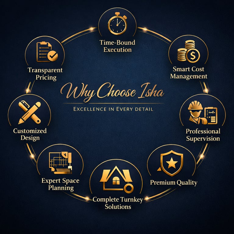 At isha interiors & design studio, we blend luxury with comfort to create homes and offices that truly reflect your style.